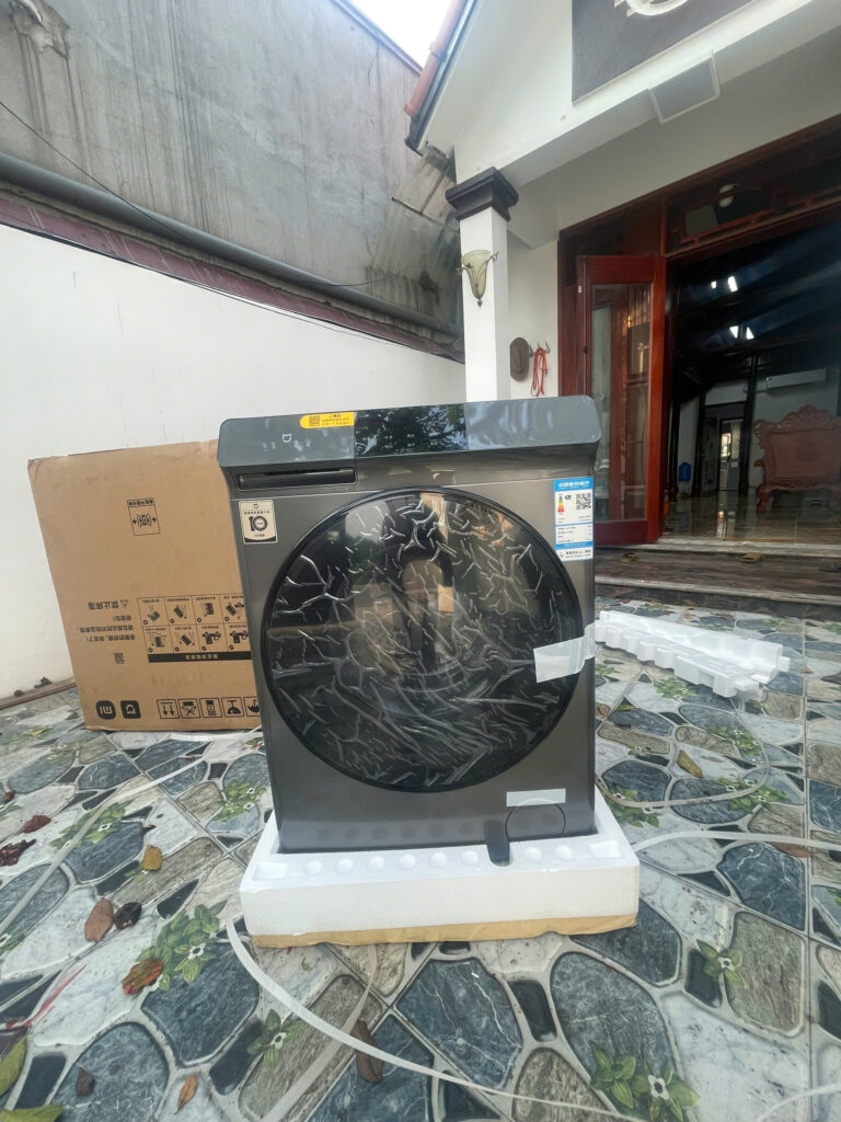 Ngoài kích thước nhỏ gọn ra thì thiết bị cũng chỉ khoảng 76kg ( 81kg cả hộp). Điều này rất thuận tiện cho việc bạn di chuyển vị trí của Máy giặt sấy Xiaomi Mijia MJ202.