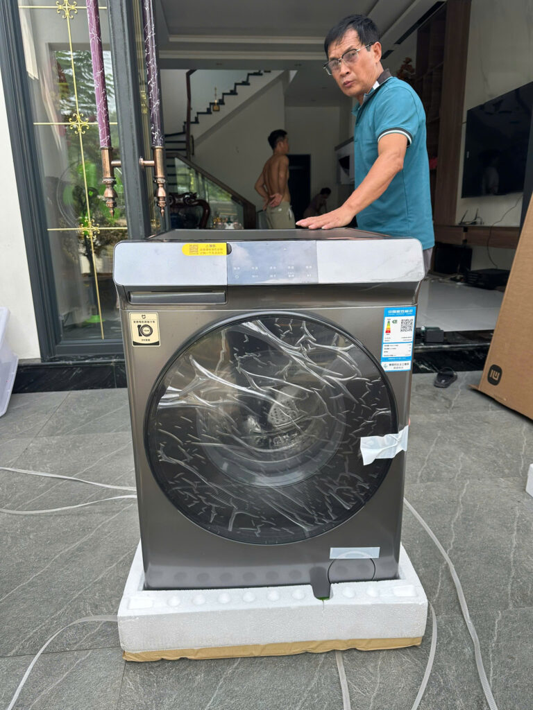 Nhân viên hỗ trợ lắp đặt bê lên tầng 2 ạ.