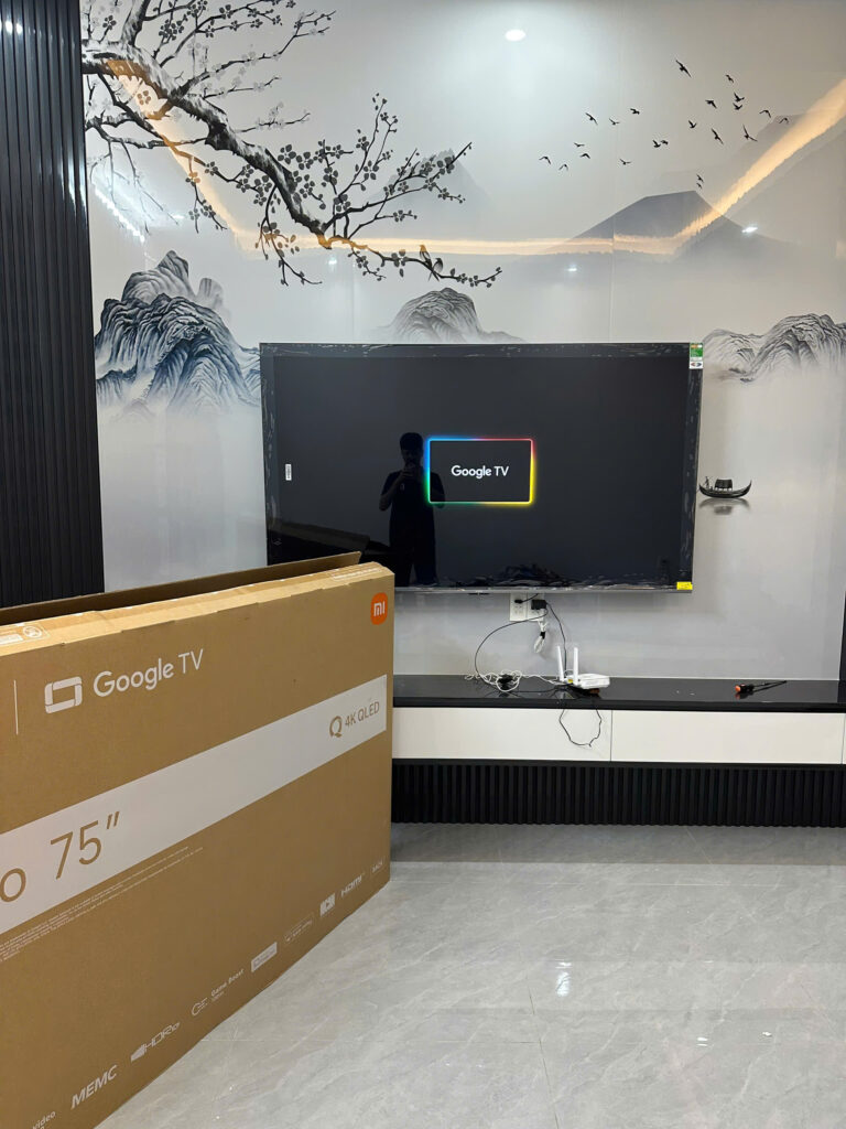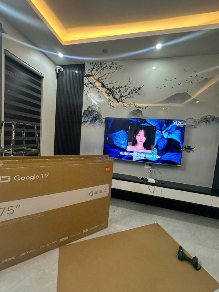 Mình lên nhà mới lắp mẫu 75 inch nhân viên lắp cẩn thận chất lượng tivi tốt nhé